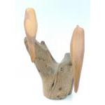 An unusual wooden decoration of 2 hand-carved birds on a wooden base.