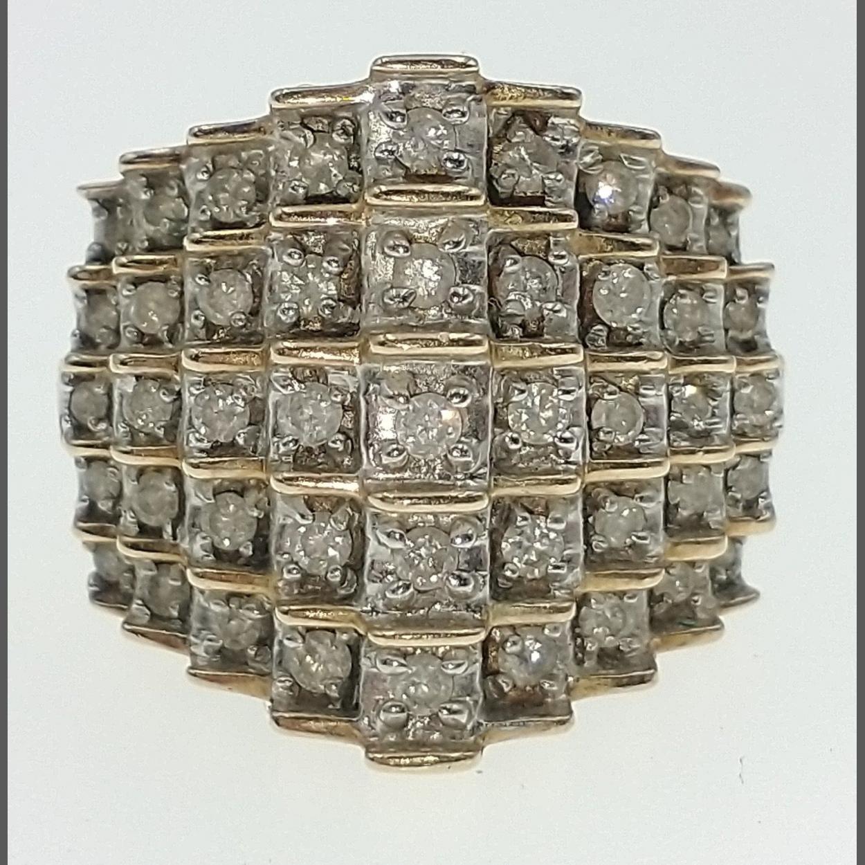 9ct Yellow Gold Diamond set ring set as 5 bars of 9 graduating stones. [ 1ct of Diamond total ] Size N