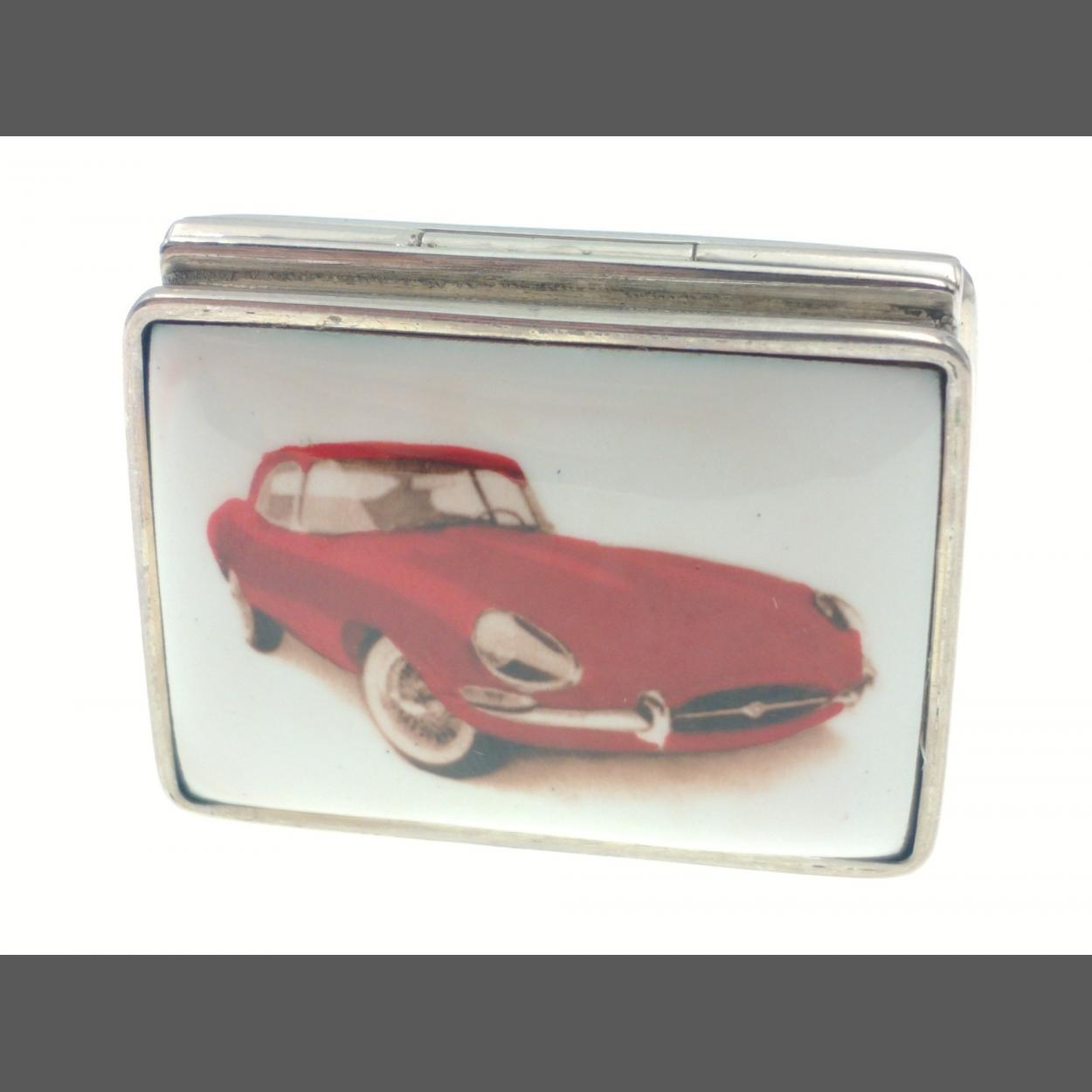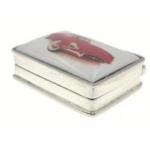 925 Stamped Silver Oblong Enamel box depicting a Red E Type Jag.