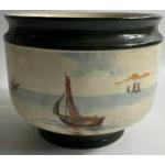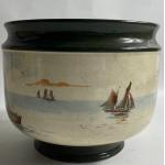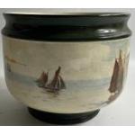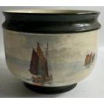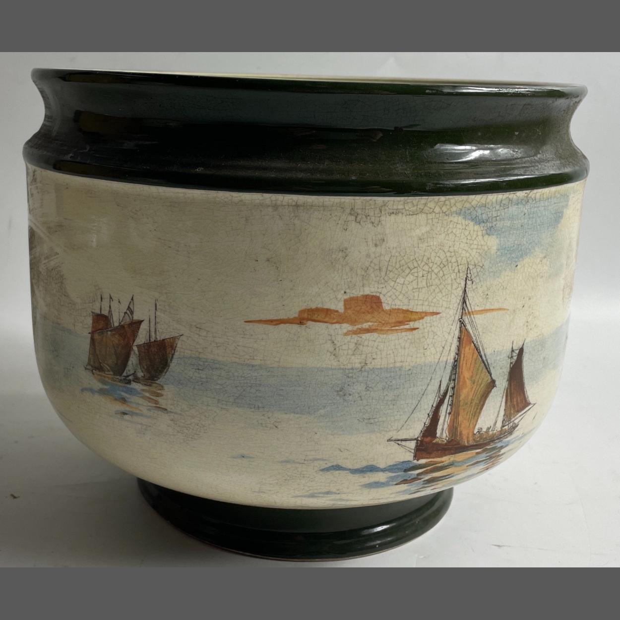 VINTAGE ROYAL DOULTON 'Sailing Ships' bowl with footed base in green with crackled glaze, 22cm diameter and approx 18cm high