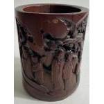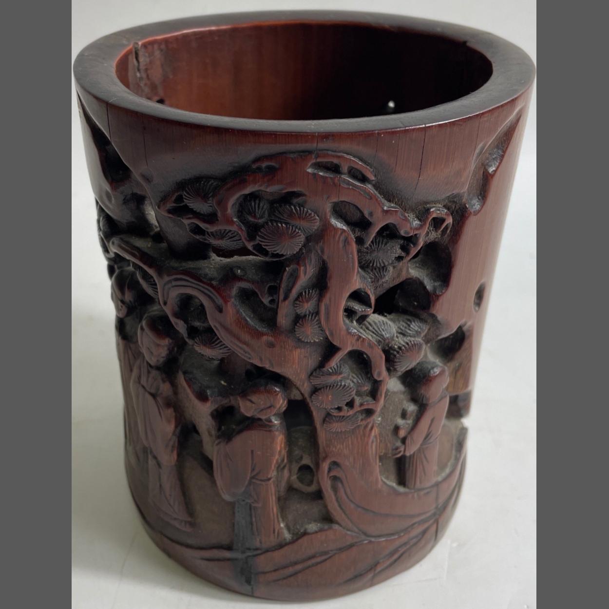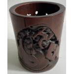 ANTIQUE CHINESE beautifully carved bamboo paint brush pot 15cm height x 12cm diameter