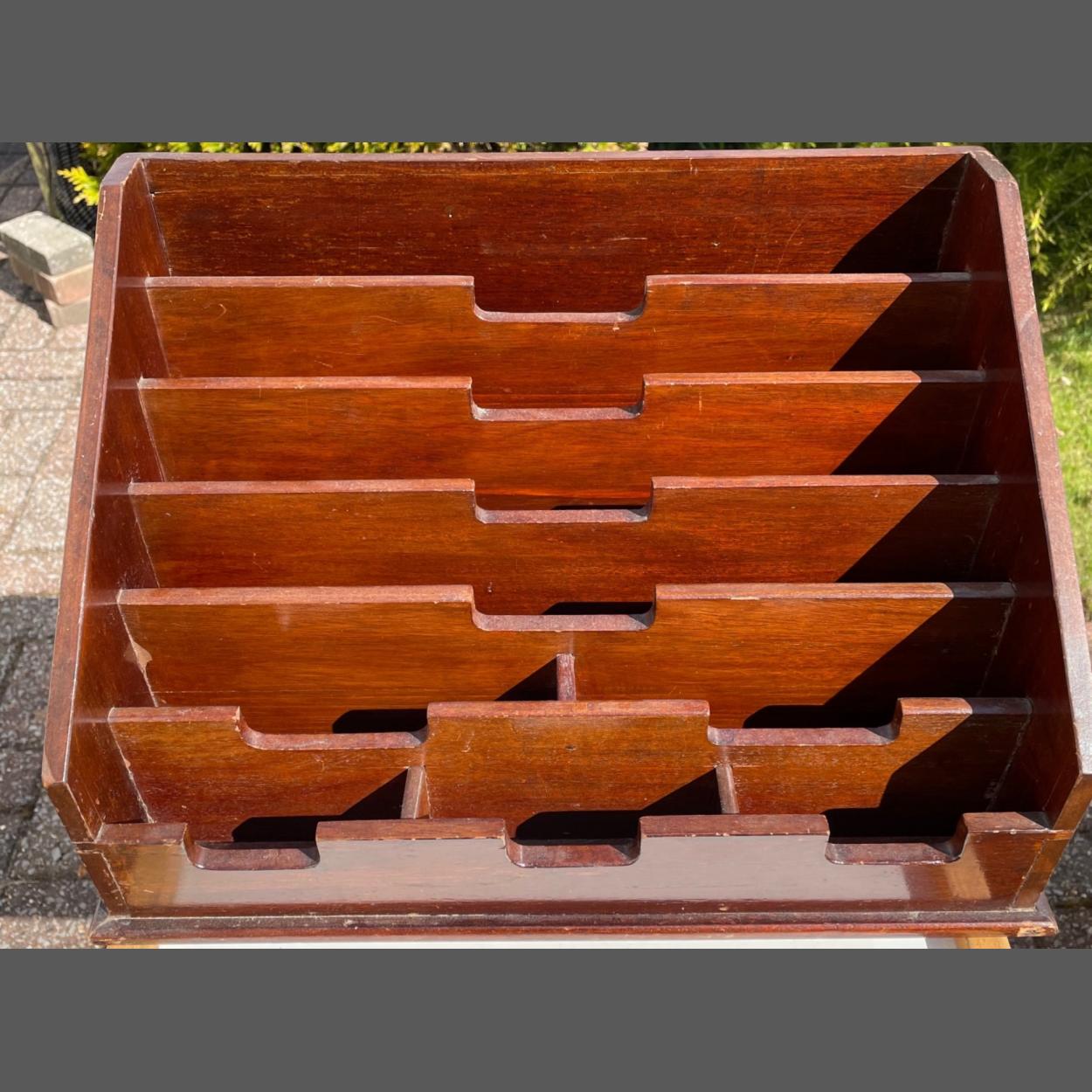 Circa 1930's desk-top stationery or magazine holder in mahogany 38cm wide x 25cm depth x 22cm height