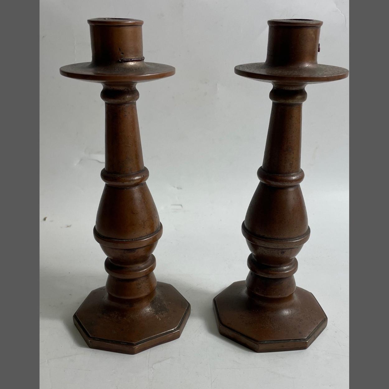 ANTIQUE A pair of heavyweight copper alloy candlesticks standing approx. 21cm high