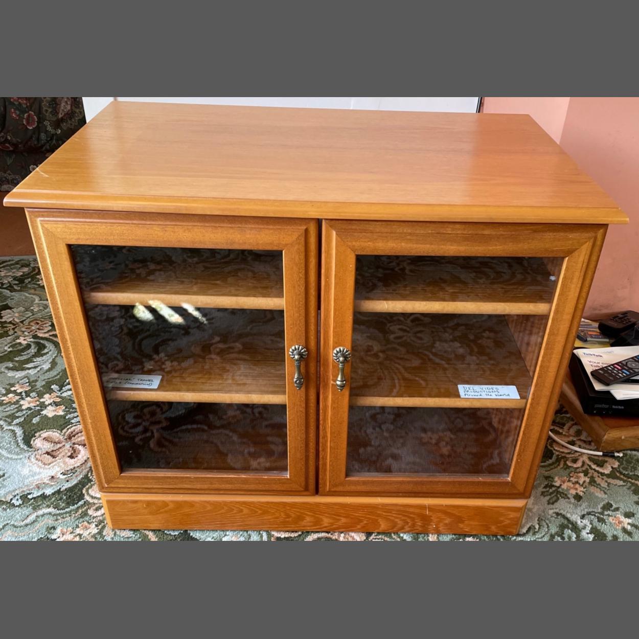 A nice wee low level wooden MEDIA CABINET with two shelves 75cm long x 48cm depth