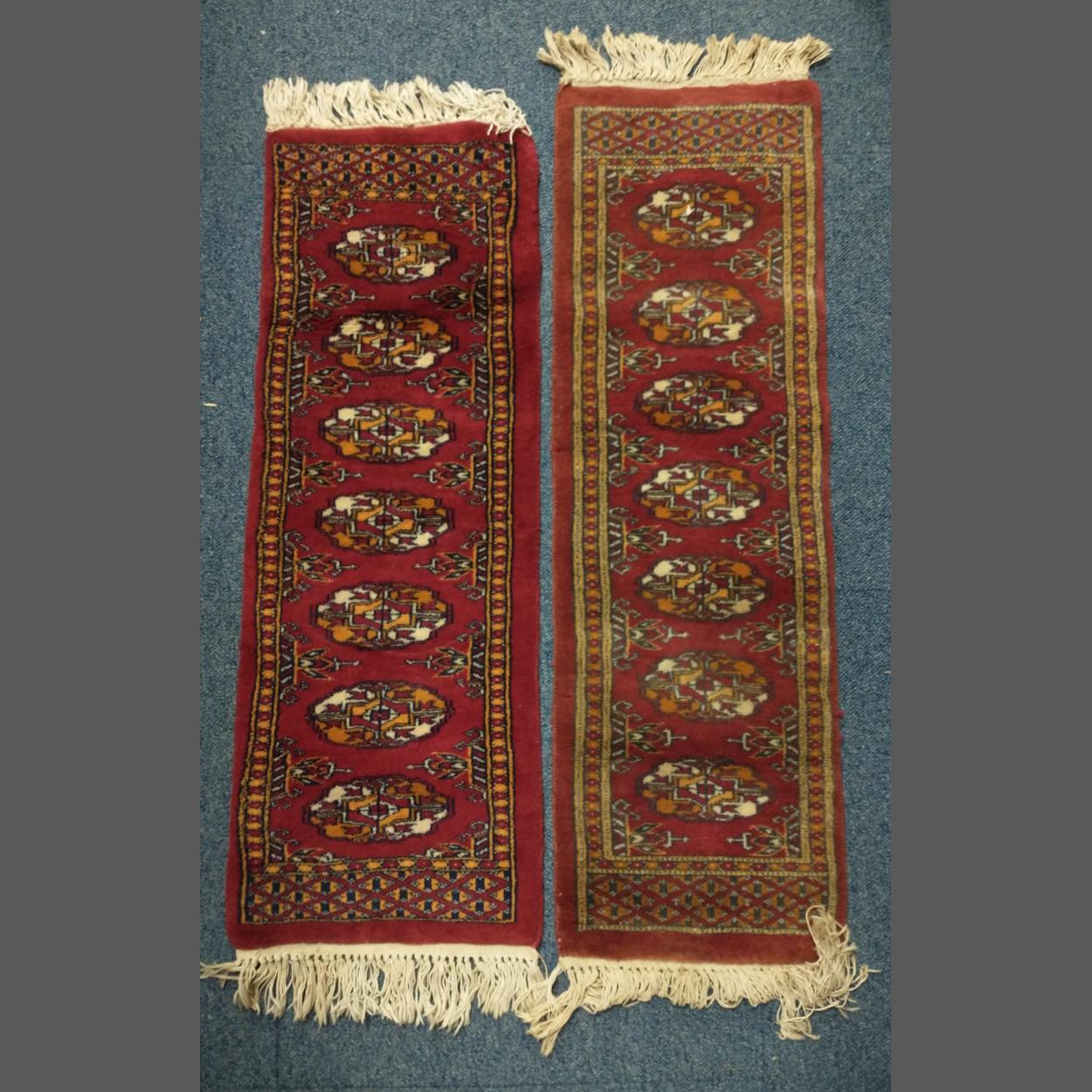 TWO Handmade MATCHING RED BASED RUGS one of which is more worn
