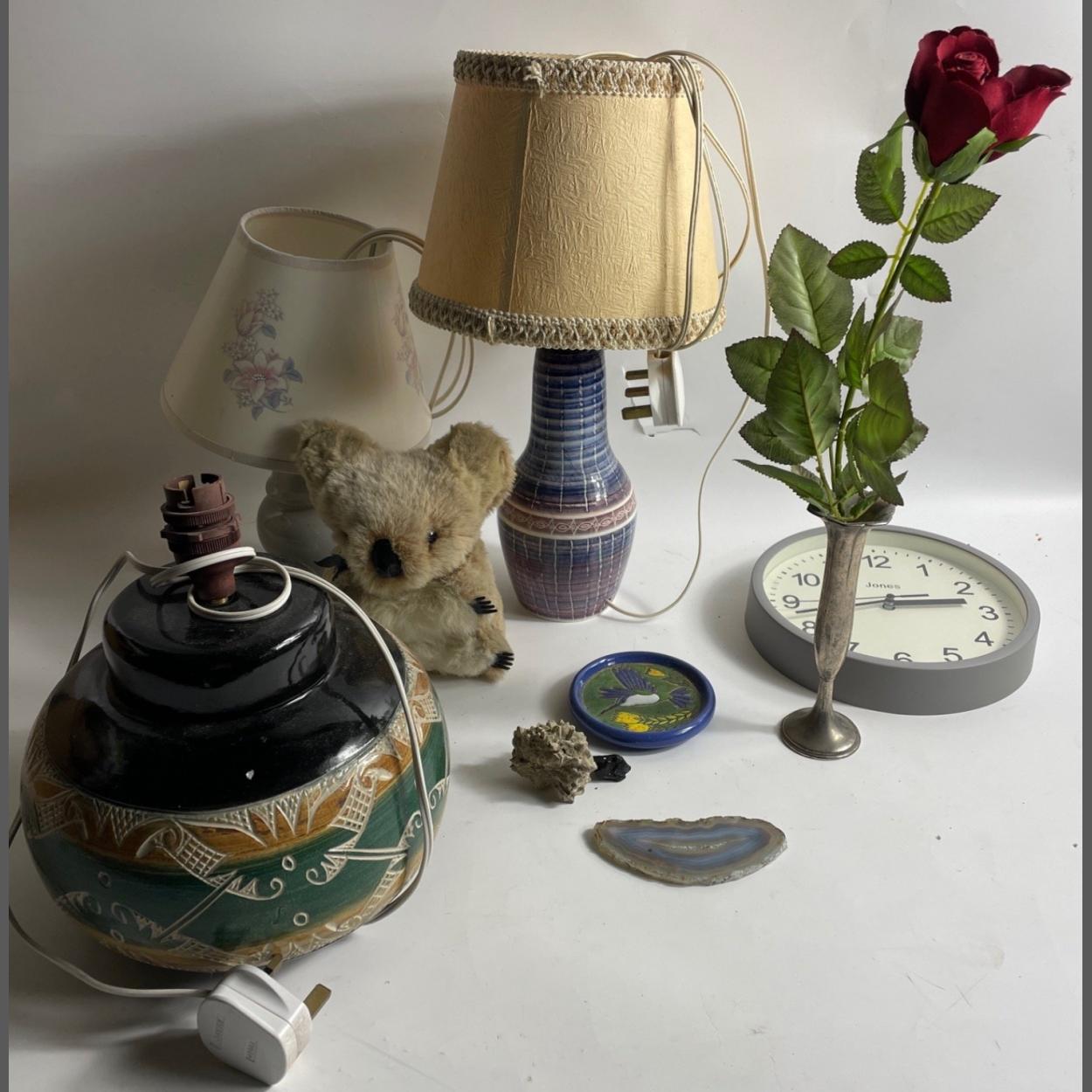 A MIXED box to include 3 TABLE LAMPS, the tallest standing approx 35cm, etc.