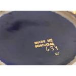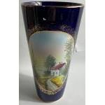 A large PORTUGUESE VASE in blue and gilt with a hand-painted country scene depicted approx 29cm tall, three very minor chips in the rim which do not detract from the appearance of the item.