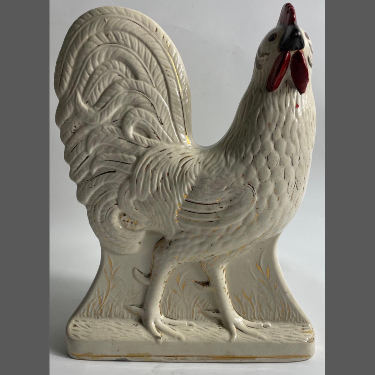 VINTAGE! A flat back style ceramic ROOSTER standing proud at approx 30cm.