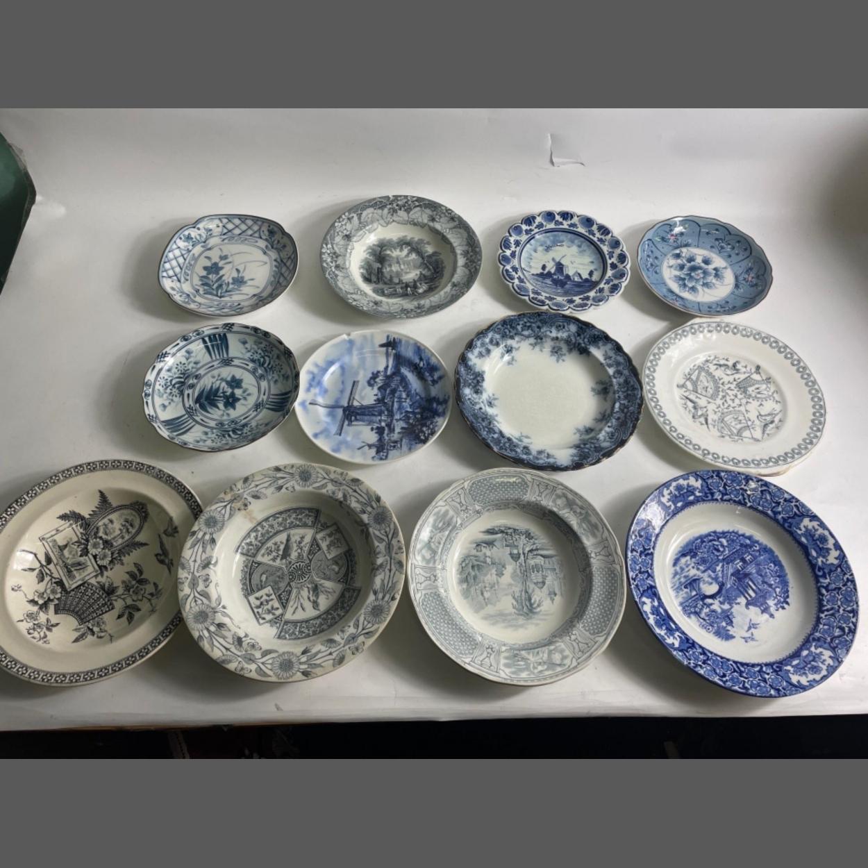 A lovely collection of blue and white ware which would make a commanding display in any dining room. Many vintage pieces from a representative sample of 19th century English pottery makers.