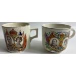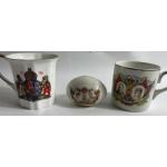 An unusual COMMEMORATIVE RUGBY BALL (7cm long approx) to commemorate the CORONATION OF GEORGE V, plus a commemorative teapot with EDWARD Vll and QUEEN ALEXANDRA plus seven ROYAL COMMEMORATIVE mugs and beakers to include King George V Malingware from the city and county of Newcastle-Upon-Tyne.