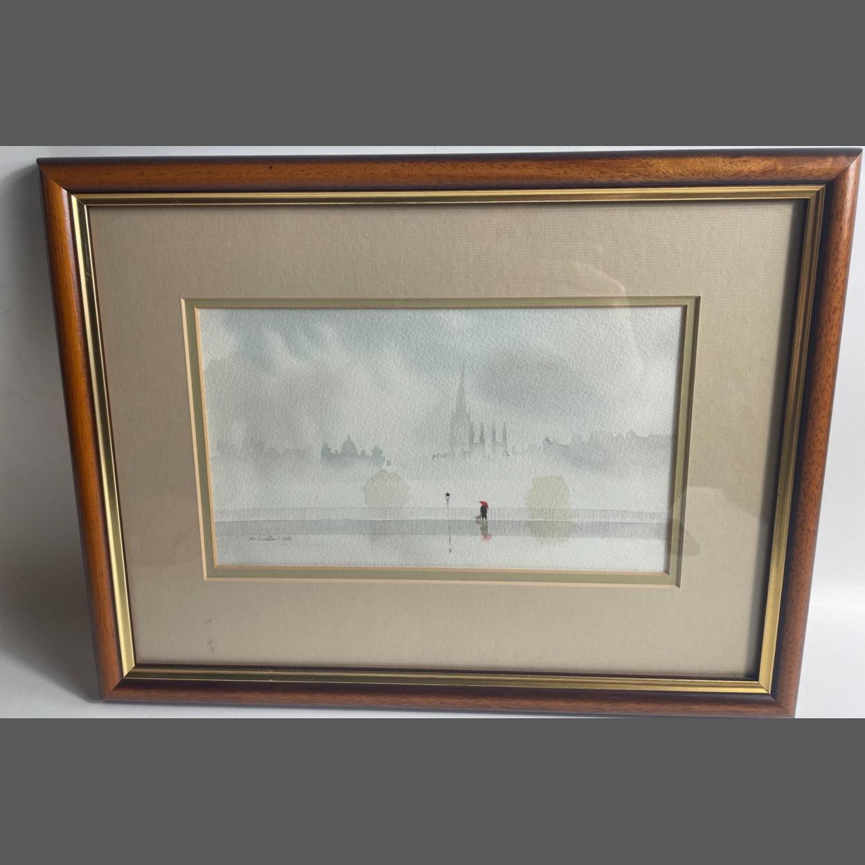 An ORIGINAL WATERCOLOUR by KEN LOCHHEAD, 'Edinburgh Rain' from 1988. Frame size 40 x 30cm