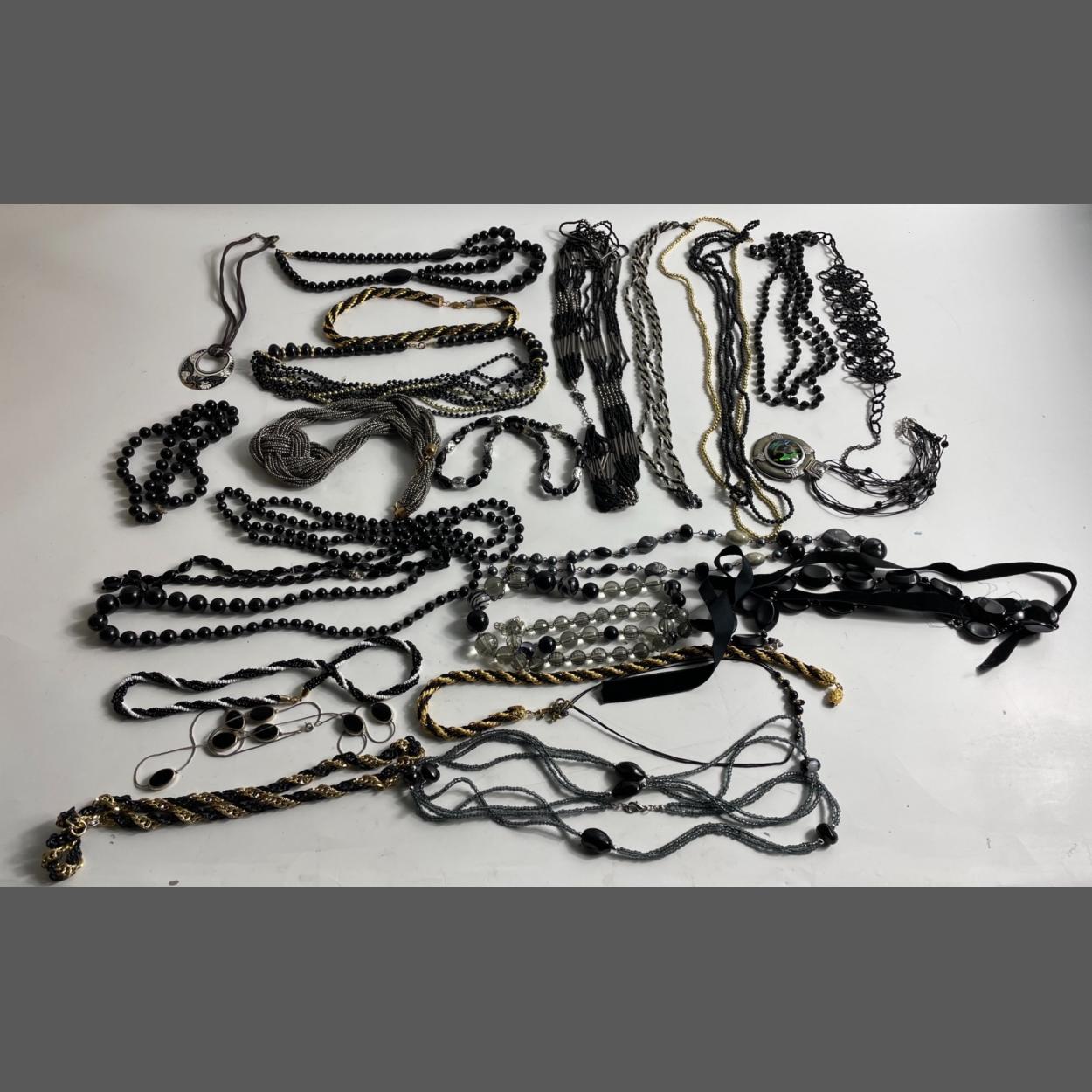 A HUGE HAUL of mainly unworn strings of beads in black and gold.