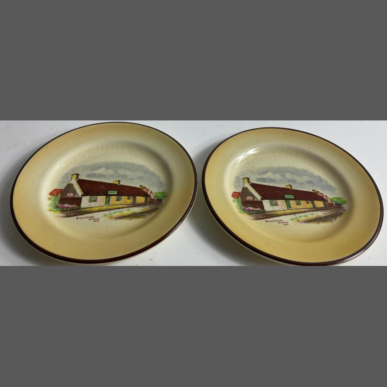 Two VINTAGE RIDGWAY 12cm diameter BURNS COTTAGE, ALLOWAY decorative plates.