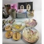 A very mixed box to include a boxed glass cheeseboard, FLOWER FAIRY plates, decorative plates etc etc.