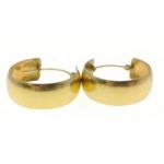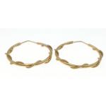 Two pairs of hoop earrings one 750 stamped(faint stamp) purchased in Saudi Arabia, weight 6.5g approx, the other pair of yellow metal earrings (again purchased in Saudi Arabia from memory according to the customer!) but no no stamp present weighing-in at 3.5g approx