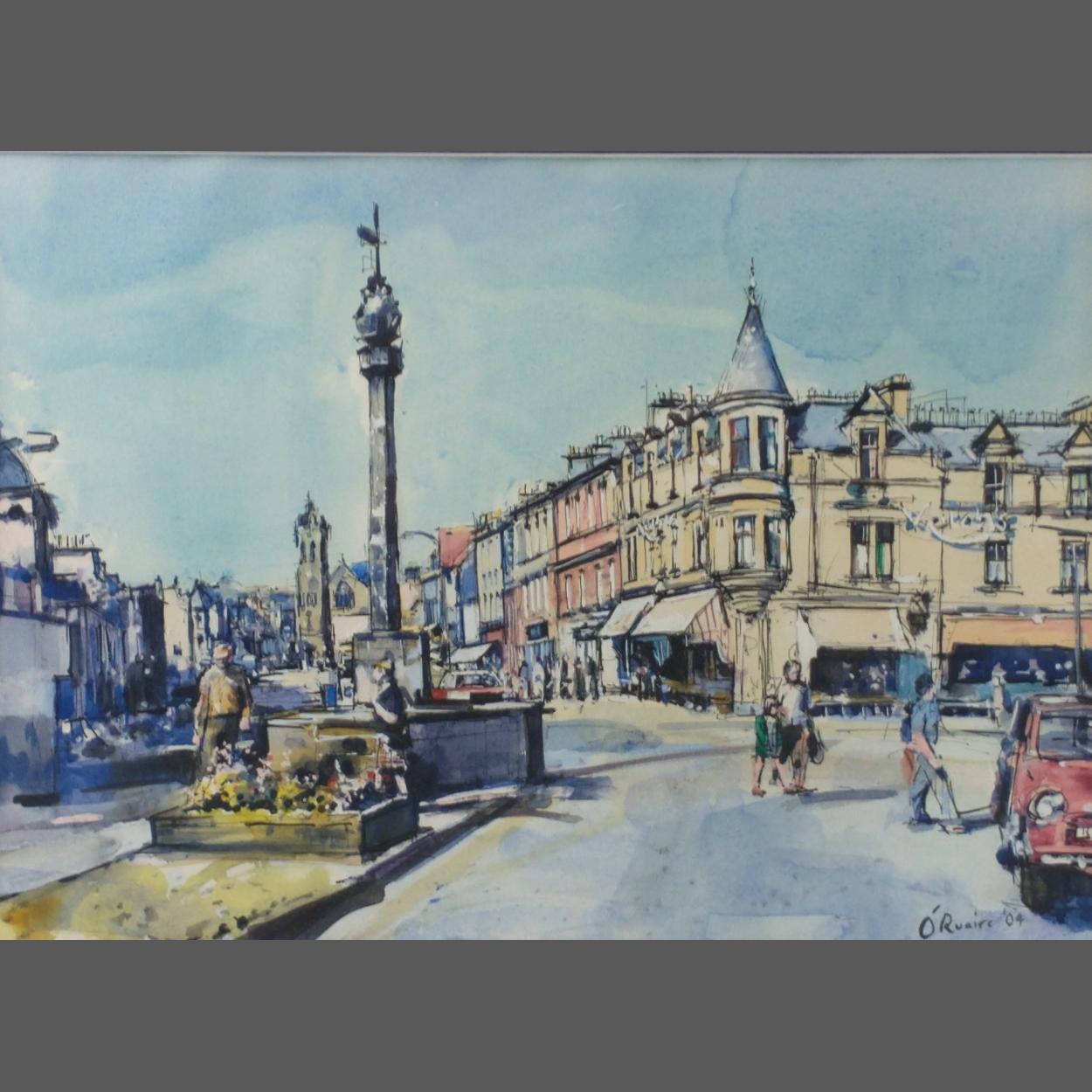 HUGH O'RUAIRE LOCAL PEEBLES SCENE Original Watercolour 'MERCAT CROSS' 43cm x 30cm