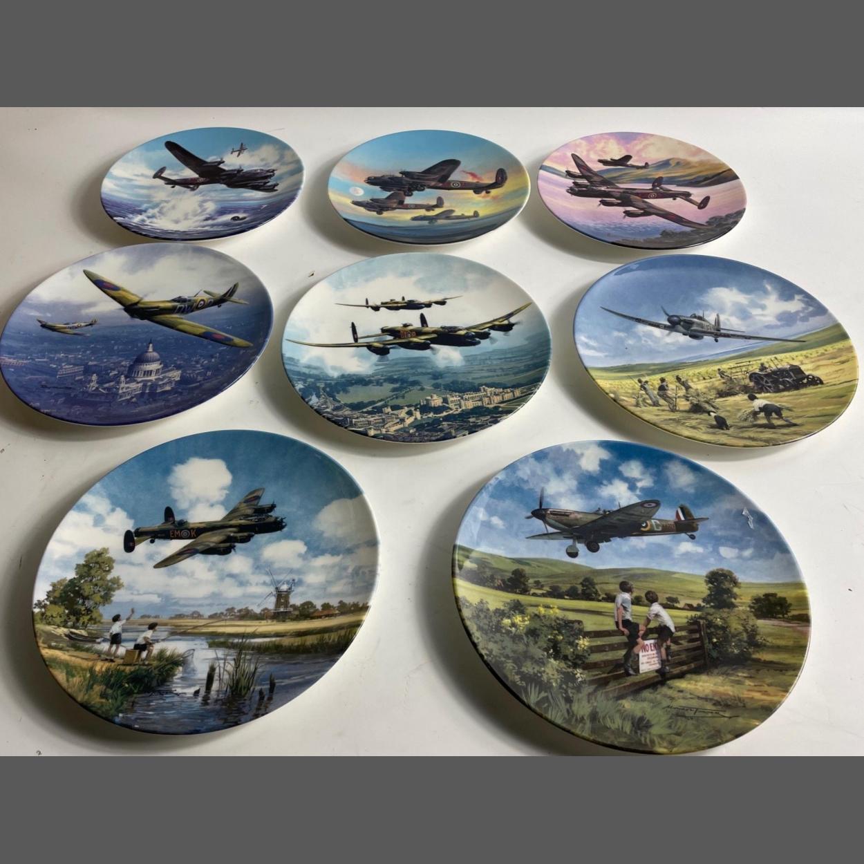 ROYAL DOUTON Ltd Edition series 'Heroes Of The Sky' x 3 to include Lancaster Low Overhead, Spitfire Coming Home and Hurricane Victory Pass and also 'Heroes Over Home Territory' collector plates to include Spitfire Over St Pauls' and Lancaster over Windsor Castle, five plates total at 20cm, also 3 collectors plates by ROYAL WORCESTER 18cm diameter to include 'Low Over The Lake', 'The Take-Off' and 'Hold at 60ft'(Dambusters)
