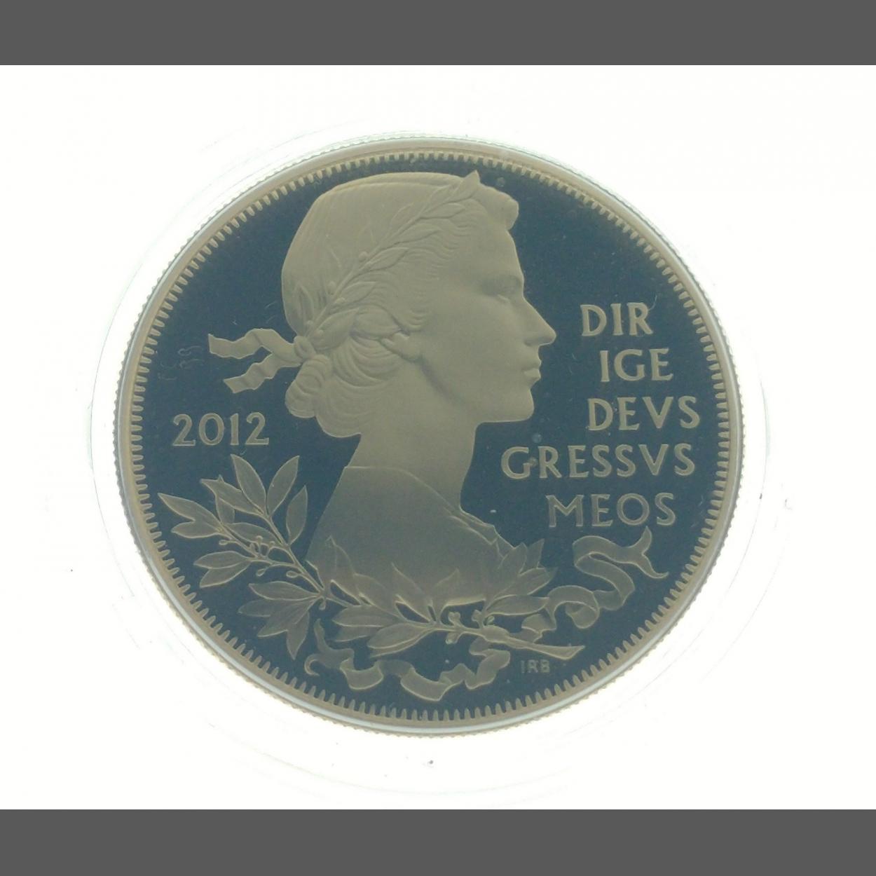 This is the 2012 Queen Elizabeth II Diamond Jubilee 2012 UK The Queens Diamond Jubilee £5 Gold Plated Silver Proof £5 Coin.