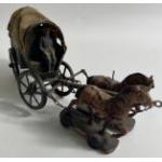 QUITE RARE!! Vintage Elastolin Lionel WWI GERMAN HORSE PAIR AND COVERED WAGON in excellent condition approx 23cm long