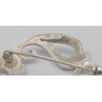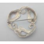 Hallmarked Edinburgh 1990 silver OLA GORIE tri-leaf brooch with scrolling design. Hallmark partially rubbed and stamped OMG