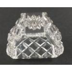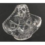 Seven crystal napkin rings plus a crystal basket (approx 16cm wide)