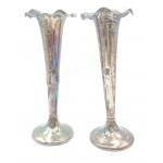 Pair of ELKINGTON PLATE posy vases (19cm approx) plus a MARTIN HALL & CO MARTINOID posy vase (approx 14cm)