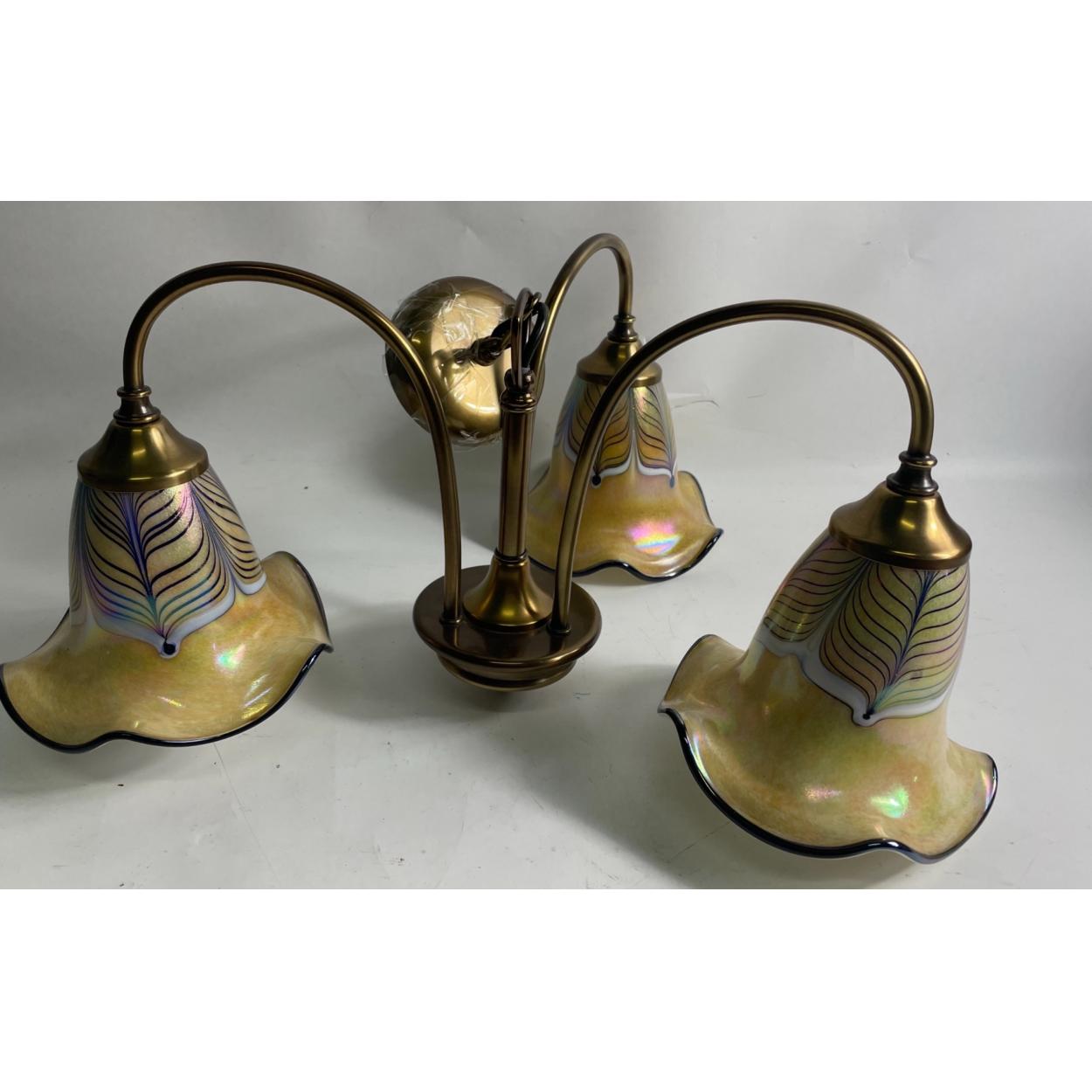 A vintage style three pendant light fitting with opalescent glass shades