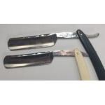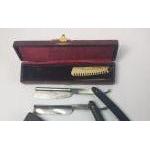 Is this not just the most tempting lot? - not one but TWO POLITICIANS' CUT THROAT RAZORS, one with a white handle the other black plus a boxed Arbenz's "Mandarin" razor, a boxed LOCKWOOD BROTHERS razor and a boxed whetstone to keep them all nice and sharp etc.
