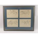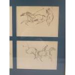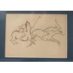Set of 4 mounted drawings of polo matches signed Marz 65