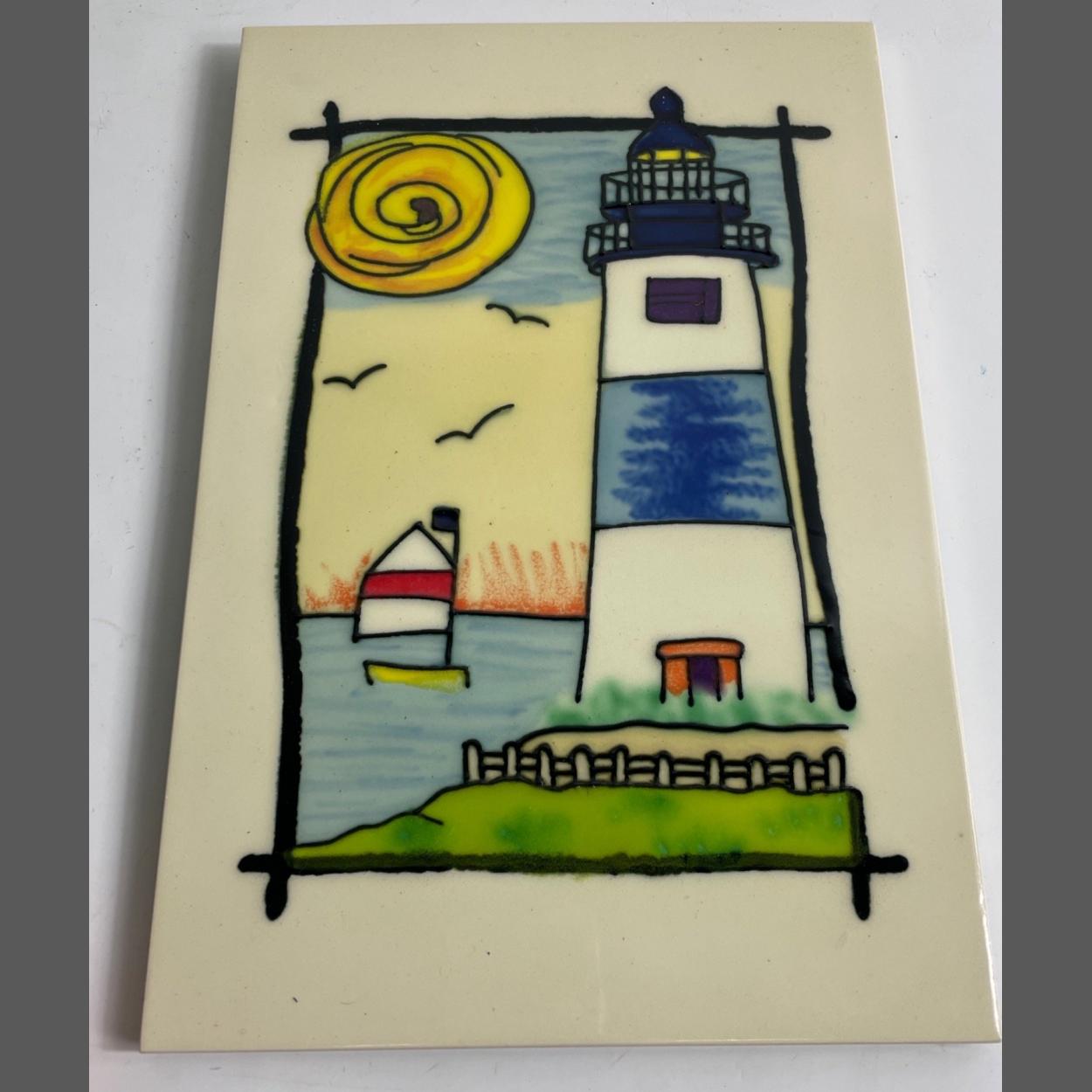 A nice DECORATIVE wall hanging tile depicting a lighthouse scene 30cm x 20cm