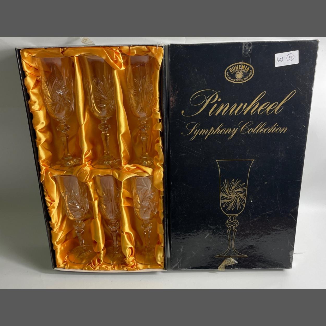 A boxed set of BOHEMIA FINE 6 CUT LEAD CRYSTAL CHAMPAGNE FLUTES - unused item