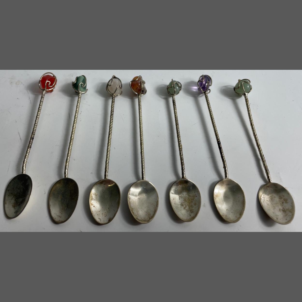 EXQUISITE! A nice set of 6 stone handled white metal tea spoons