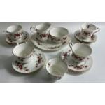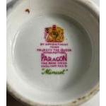 Vintage PARAGON MINUET part tea service with scalloped edges and gilt trim to include 1 cake plate (26cm approx), 5 cups (1 has a slight crack), 6 saucers, 6 side plates, 1 milk jug and 1 sugar bowl