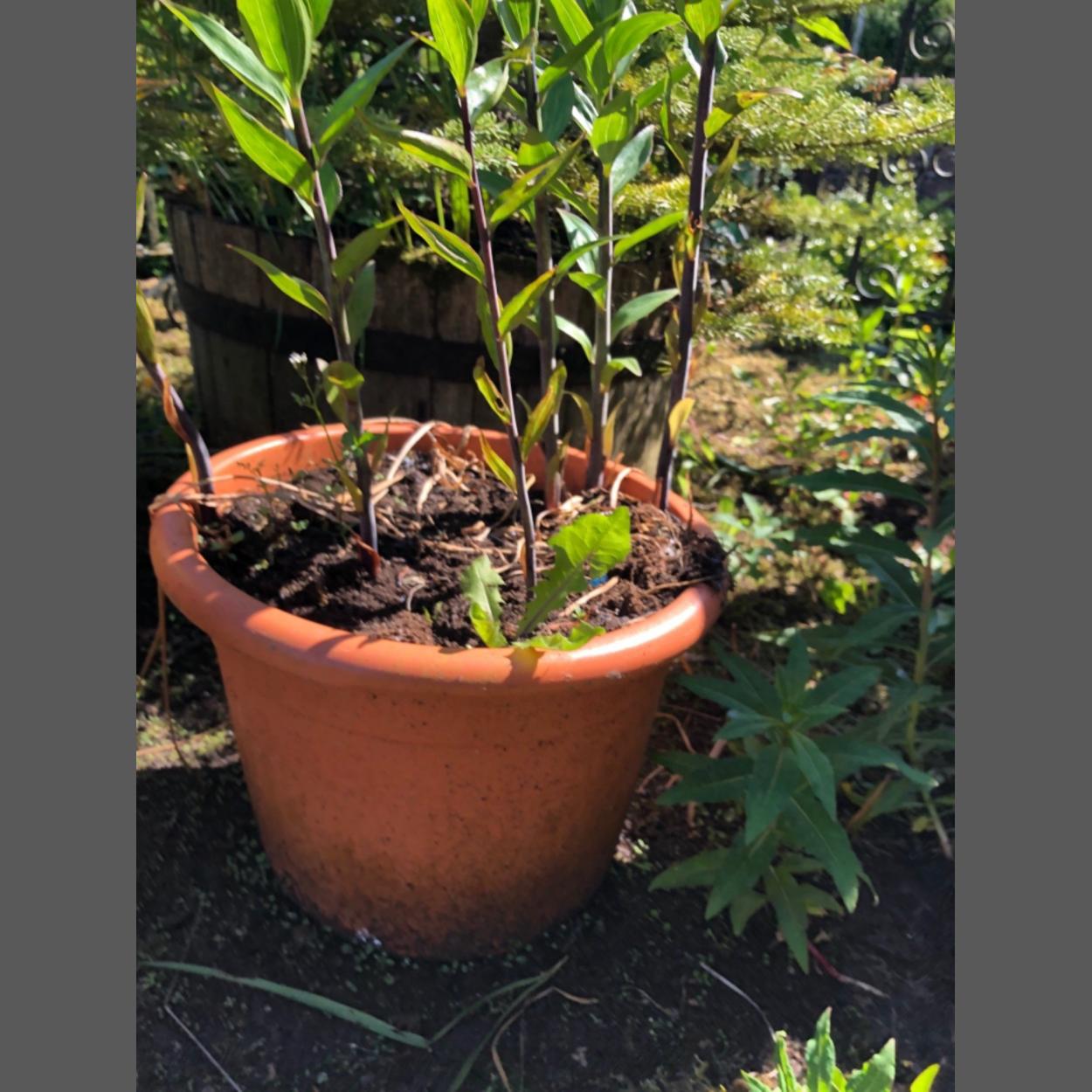 A resin terracotta style planter complete with perennial lillies coming through! Height 27cm x diameter 32cm
