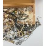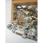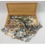 TREASURE WITHIN, wooden box with cornucopia of costume necklaces and other goodies!