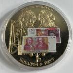 Masterfully plated with pure 24-carat gold x 6 pieces to include Bank Of England £5, The 10 Shilling Banknote Britannia Series, The Bank Of England £5 banknote, The 10 Shilling Bank Of England Banknote portrait series C,The £50 banknote featuring Boulton & Watt and lastly The Bank Of England banknote with Sir John Houblon. 9 pieces in total, all within their presentation set and Certificate of Ownership No Z2802