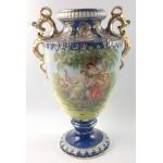 Blue based 19th century URN VASE with double gilded handles and scenes of various Grecian ladies