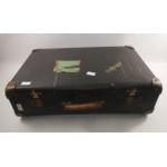 A vintage suitcase 25 x 17 x 19cm to include contents of vintage football programmes and Scottish football cards.