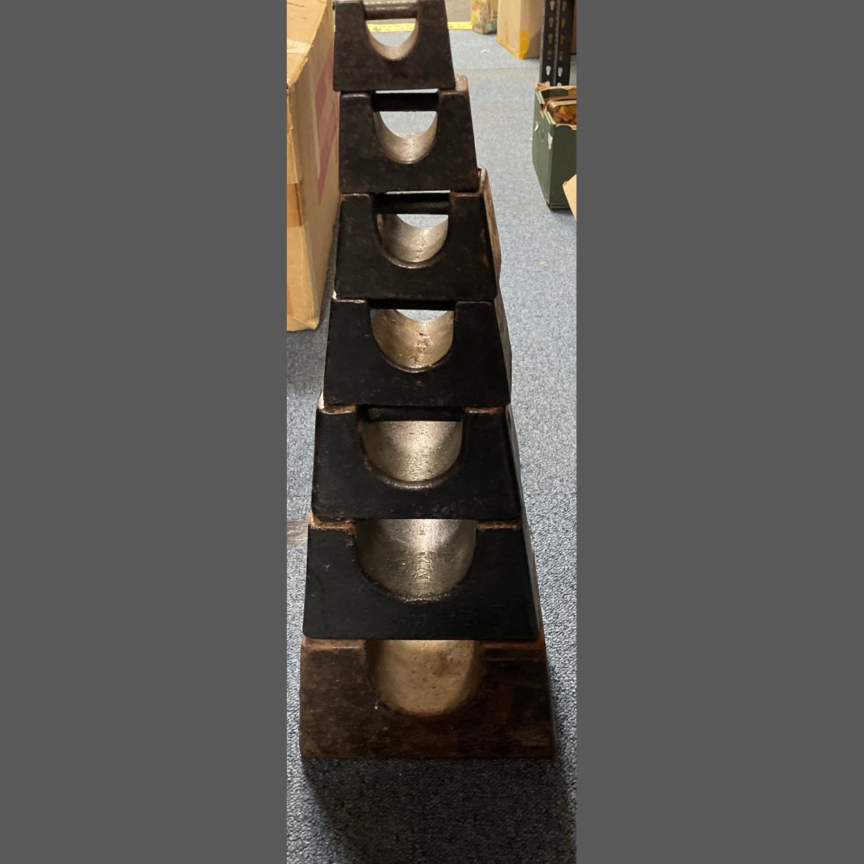 A set of antique stacking weights from 56lbs down to 1lb( 7 of)