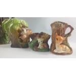 A collection of WITHERNSEA EASTGATE FAUNA POTTER and a crack at the lip), a plantpot holder (approx 20cm), and four smaller flower holders the tallest being 11cm approx