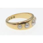 An 18ct stamped Birmingham yellow gold ladies dress ring with five pearls inset gross weight 4.92g approx ring size N/O