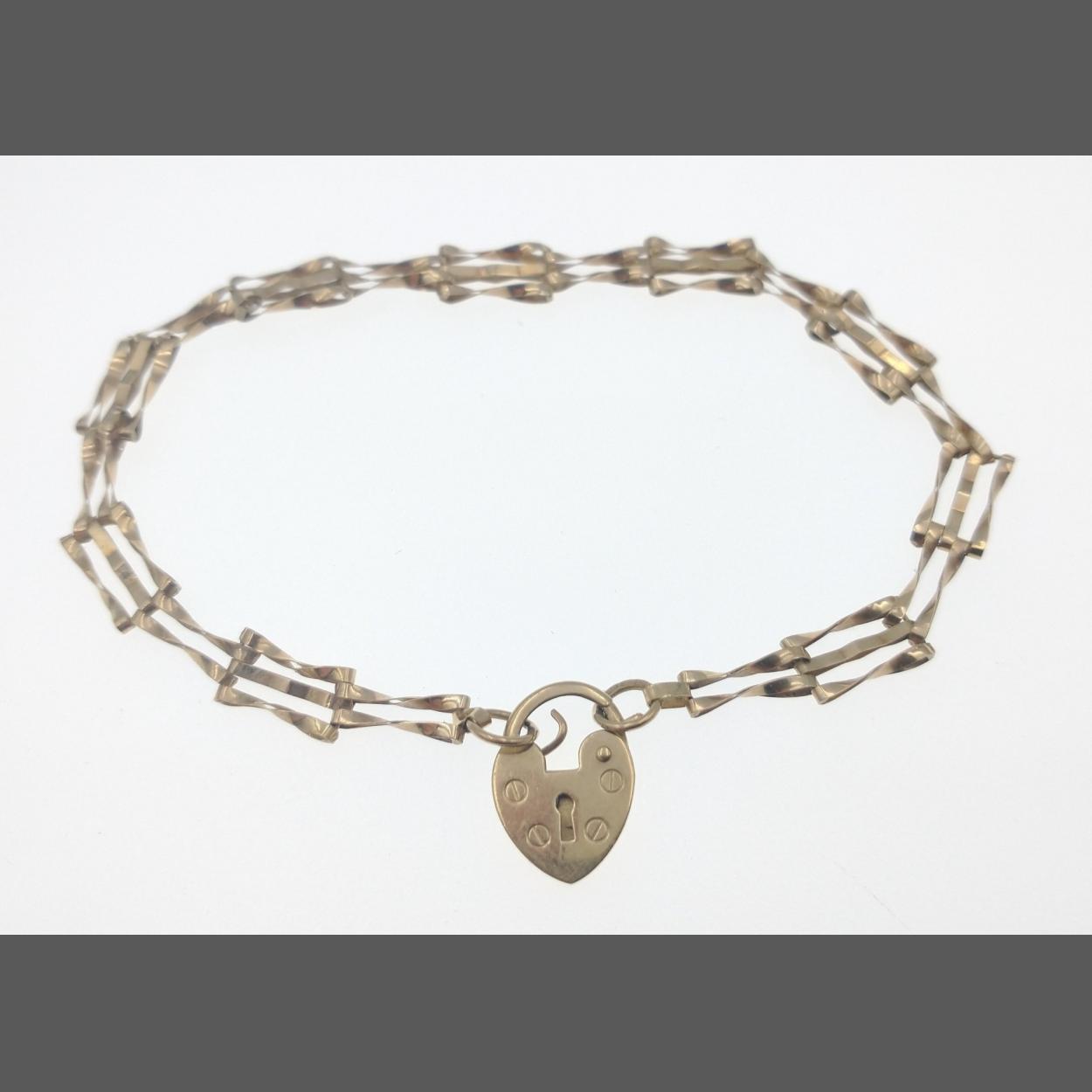 375 stamped yellow gold gate-link bracelet with locket weight 2.42g approx