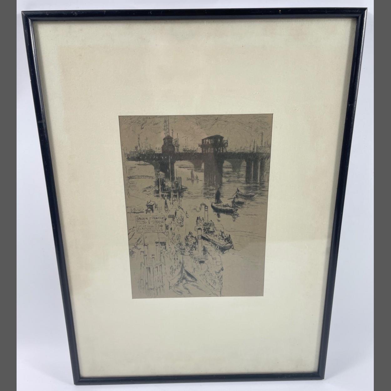 THAMES Scene late 19th century etching (no artist) with Thames steam paddle boats - an EXCEPTIONAL QUALITY ETCHING 17cm x 21cm