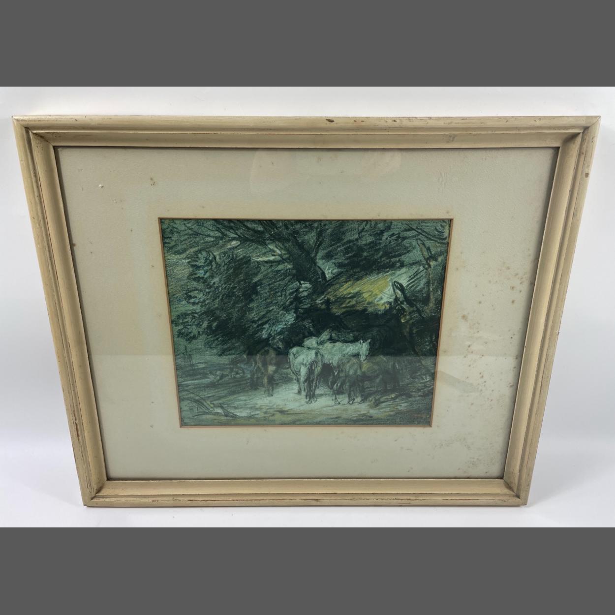 THOMAS GAINSBOROUGH (1727-1788) A Wooded Landscape - 'Horses Under A Shed' Limited print by Ganymede Press London - This Crayon study was later used by him as the subject for a later etching 10" x 12" approx