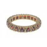 9ct stamped GORGEOUS GARNET set eternity style ring size N, weight gross 3.10g approx