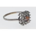 9ct and silver stamped white metal ladies square set ring with an orange square stone surrounded by white stones ring size Q gross weight 1.95g approx