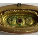A pretty 9ct hallmarked Victorian BROOCH with 2 seed pearls and a red stone 5cm long gross weight 3.5g