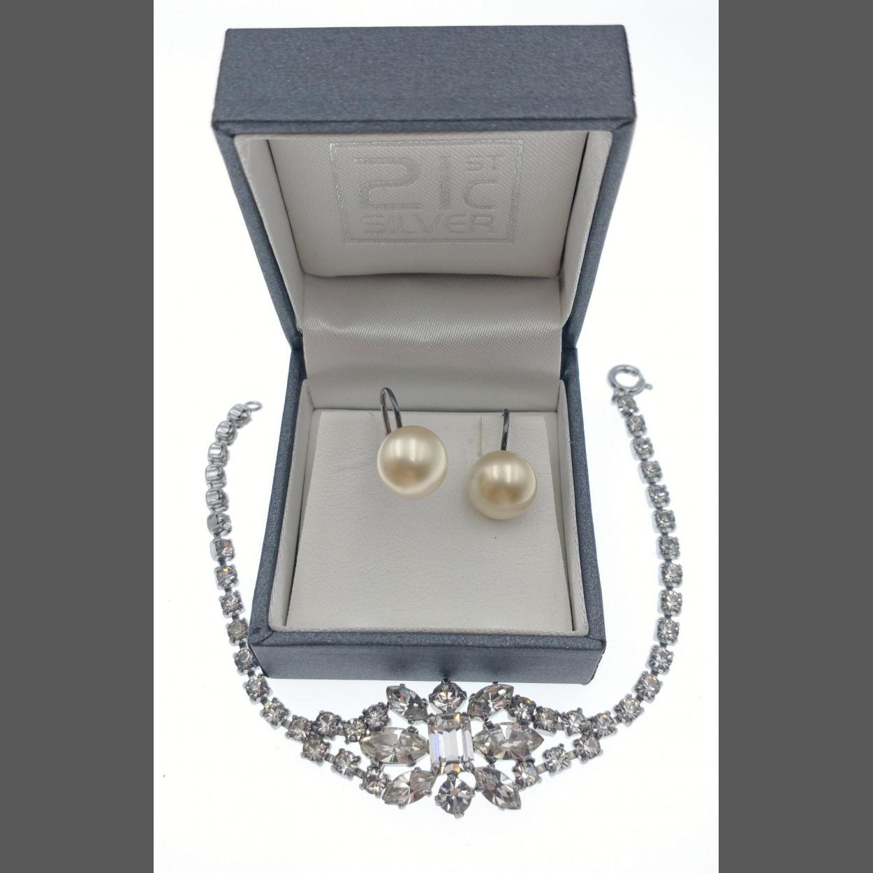A mixed lot of jewellery to include a pair of nice STERLING marked pearl stud earrings, 2.9g weight gross and also a nice piece of VINTAGE bling jewellery ladies bracelet 18cm long