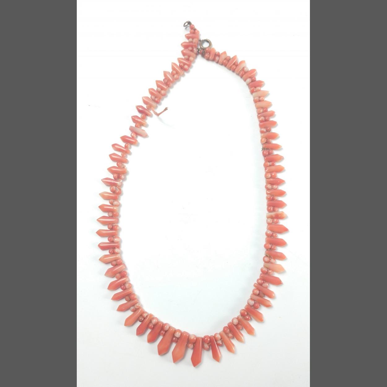 A VINTAGE c1910 ORANGE AND WHITE CORAL necklace with fastener