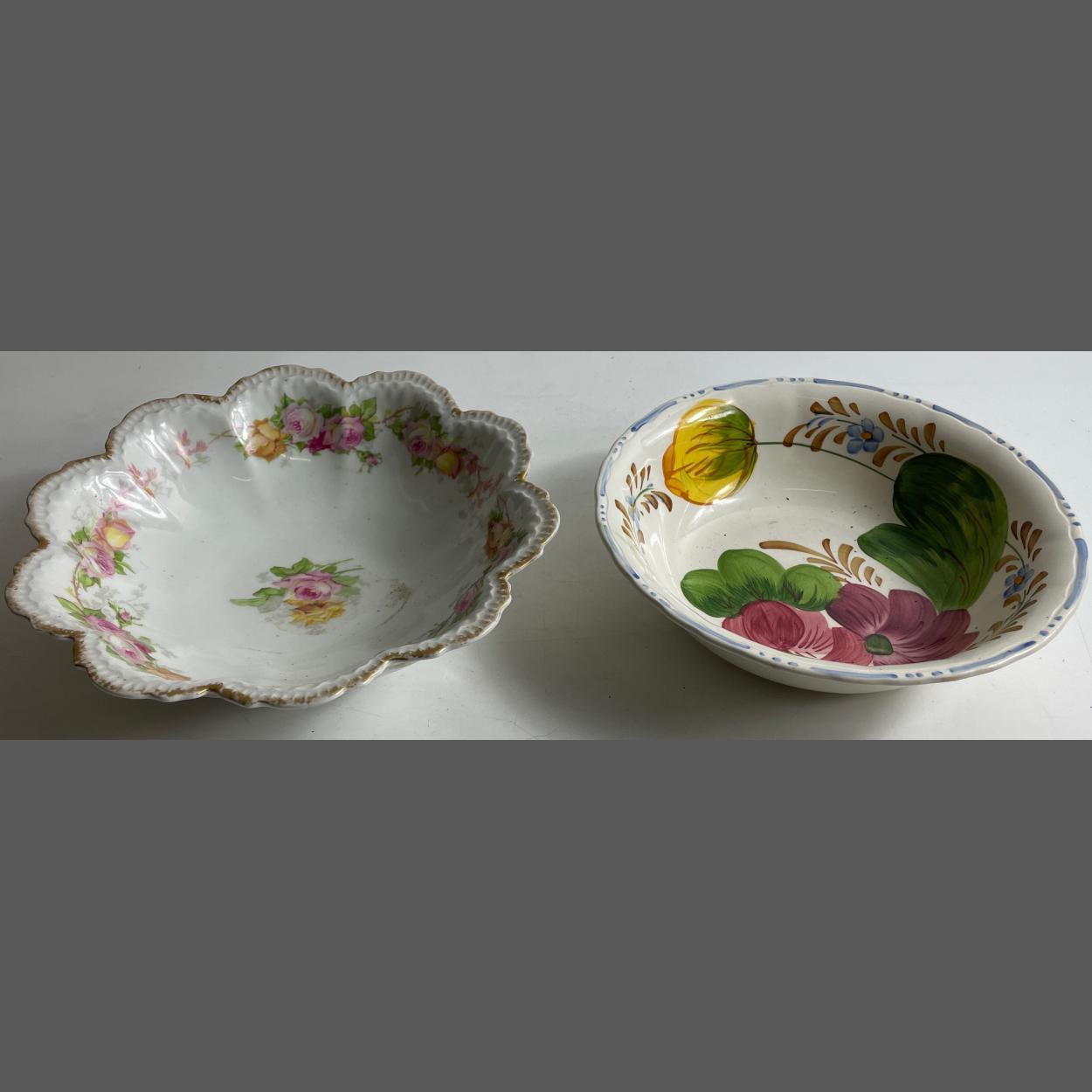 VINTAGE A GDA FRANCE porcelain bowl in floral pattern 26cm diameter with also a BELLE FIORE CHANTICLEER vintage bowl in a rich hand painted floral pattern 23cm